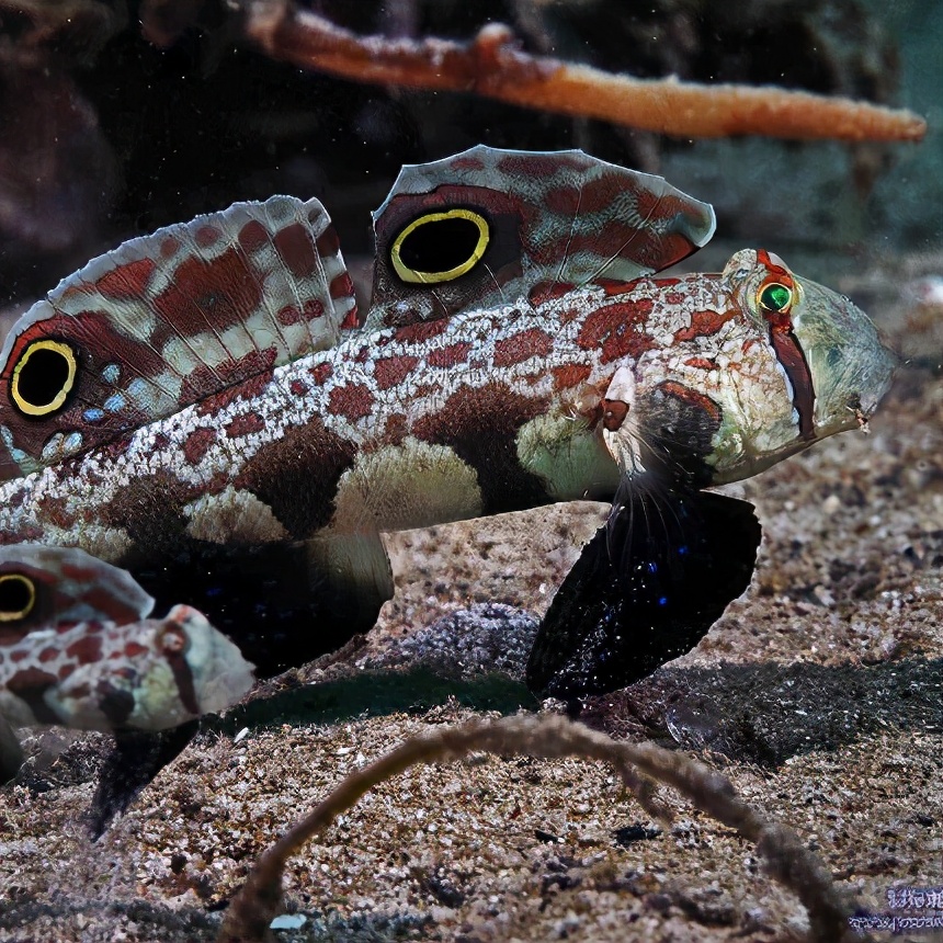 双斑显色虾虎鱼,属硬骨鱼纲,身体下半部分有三个不规则的棕色条。